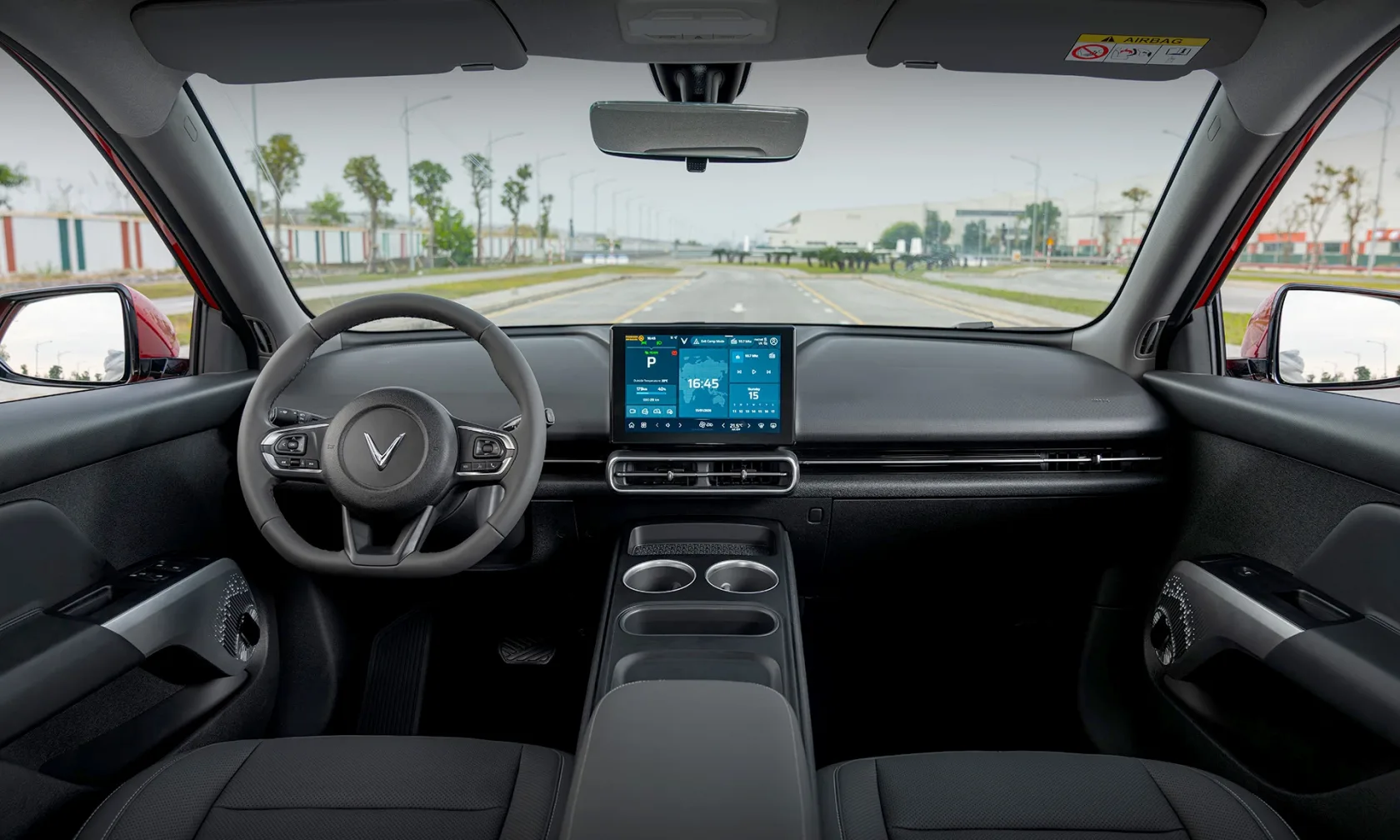 Nội thất thiết kế đặc trưng VinFast, phong cách hiện đại và tiện nghi. Xe trang bị vô-lăng đáy phẳng thể thao, bọc da và tích hợp nhiều phím bấm điều khiển chức năng. Cần số điện tử đặt sau vô-lăng. Màn hình thông tin giải trí 10,1 inch, hỗ trợ kết nối Apple CarPlay/Android Auto.