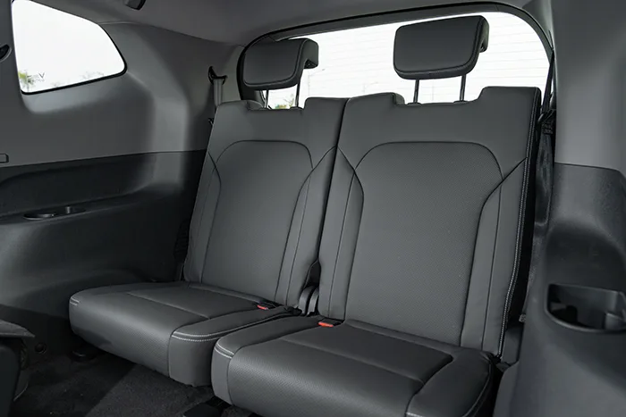 Ghế da tổng hợp, điều hòa tự động tích hợp lọc bụi mịn PM 2.5, cửa gió điều hòa cả 3 hàng ghế. Dung tích khoang hành lý có thể mở rộng lên tới 1.240 lít khi gập các hàng ghế sau.